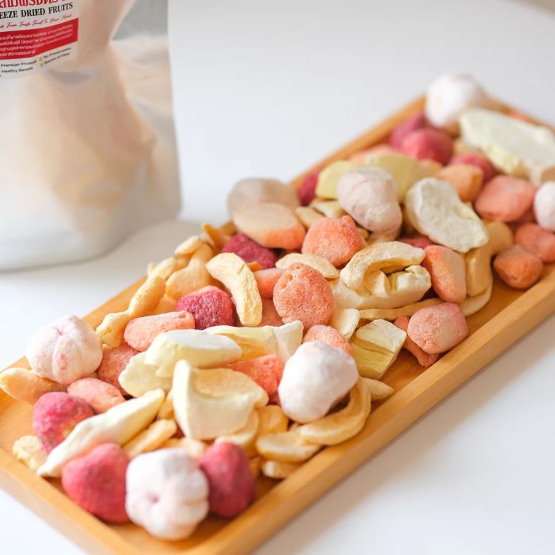 Garden Fruits Mixed Freeze Dried 4 ผลไม้ฟรีซดรายรวม 4 ชนิด (มังคุด สตรอเบอรี่ พีช เงาะ) เกรดพรีเมี่ยม